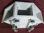 Клапан перекидной элеваторный на 3 направления. Предназначен для перевода потока продукта в любом необходимом направлении из трёх возможных. Клапан оборудован двумя перекидными язычками. Язычки клапана футерированы мягким полимерным износостойким материалом, что исключает посыпание продукта. Клапан оборудован бесконтактными датчиками ВБИ-М30-49С-2111-Л, итальянскими пневмоприводами Camozzi. Деталь окрашена износостойкой порошковой эмалью. Возможно изготовление из нержавеющей стали. Исполнение: