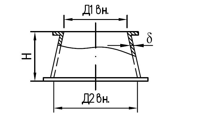 Детали перехода диаметров аспирационных сетей из оцинкованной стали. Ø80 - Ø280 δ = 0,55 мм Ø80 - Ø800 δ = 0,7 мм Ø160 - Ø1000 δ = 1,0 мм